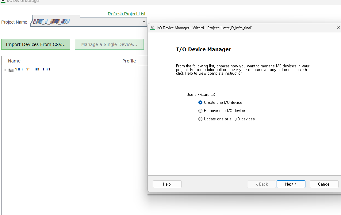 Project Name 확인 꼭 하시고, Manage a Single Device 클릭